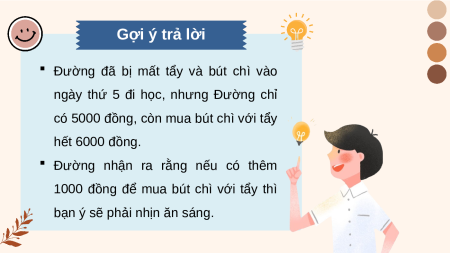 Ăn sáng ngày thứ 4: 10 000 đồng. Gợi ý trả lời