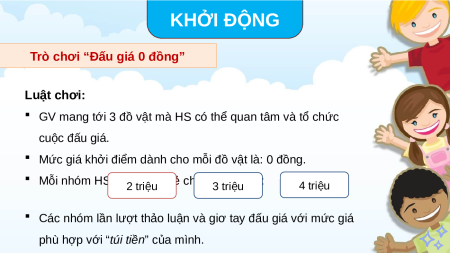 GV mang tới 3 đồ vật mà HS có thể quan tâm và tổ chức cuộc đấu giá.