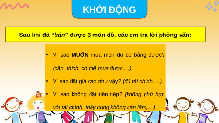 Sau khi đã “bán” được 3 món đồ, các em trả lời phỏng vấn: