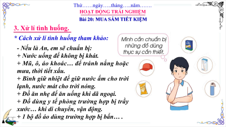 HOẠT ĐỘNG TRẢI NGHIỆM 3. Xử lí tình huống.