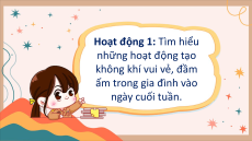 Hoạt động 1: Tìm hiểu những hoạt động tạo không khí vui vẻ, đầm ấm trong gia đình vào ngày cuối tuần.