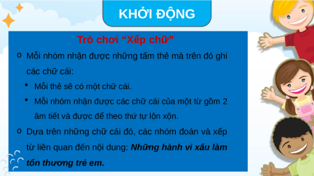 o Dựa trên những chữ cái đó, các nhóm đoán và xếp