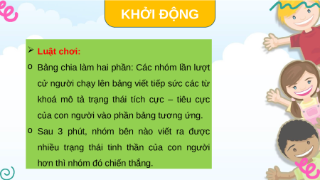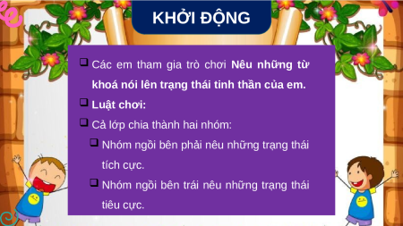 Nhóm ngồi bên trái nêu những trạng thái tiêu cực. KHỞI ĐỘNG Luật chơi: