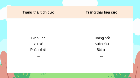 Trạng thái tiêu cực Bình tĩnh Hoảng hốt Vui vẻ Buồn rầu Phấn khởi Bất an ... ...
