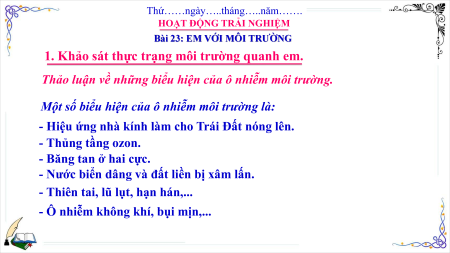 1. Khảo sát thực trạng môi trường quanh em.