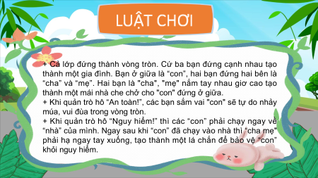 + Khi quản trò hô “An toàn!”, các bạn sắm vai "con" sẽ tự do nhảy