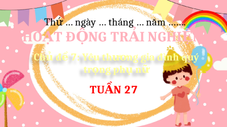 ày … tháng … năm ……. HOẠT Đ NG TR Ộ I NGHI Ả M Ệ Ch đ ủ 7 ề : Yêu thư n ơ g gia đình quý trọng ph n ụ ữ TUẦN 27 SINH Biểu diễn văn nghệ HO T Ạ D I