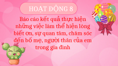 ƯỚ CỜ về chủ đề gia đình Ti u ph ể m ẩ "Gia đình yêu thương" HO T Đ Ạ NG Ộ 8 Báo cáo k t qu ế th ả c hi ự ện nh n ữ g vi c ệ làm th hi ể n ệ lòng bi t ế n ơ , s qua ự n tâm, chăm sóc đ n ế b m ố , n ẹ g i thân ườ của em trong gia đình