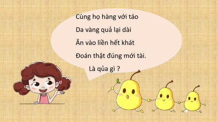 TIẾNG VIỆT 1 Tập 1 Tuần 3 Bài 10: ê - l KHỞI ĐỘNG Cùng họ hàng với táo Da vàng quả lại dài Ăn vào liền hết khát