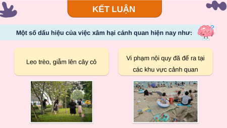 Một số dấu hiệu của việc xâm hại cảnh quan hiện nay như: Rác vứt không Đọng nước Viết, vẽ bậy đúng chỗ KẾT LUẬN