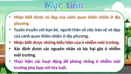 • Nhận biết được những biểu hiện của ô nhiễm môi trường.