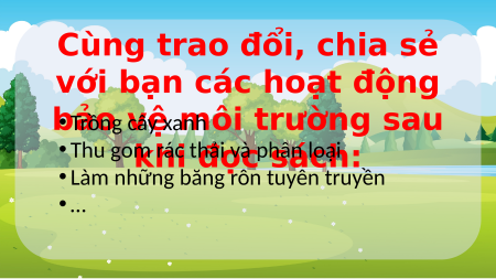 • Tuyên truyền với bạn bè, người thân về việc bảo vệ vẻ đẹp