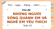 Thứ … ngày … tháng … năm ………. Chủ đề NHỮNG NGƯỜI SỐNG QUANH EM VÀ NGHỀ EM YÊU THÍCH Tuần 33 Khởi động