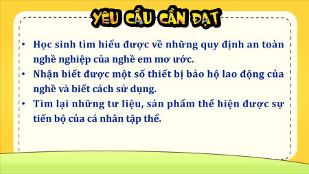 • Nhận biết được một số thiết bị bảo hộ lao động của
