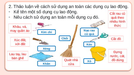 2. Thảo luận về cách sử dụng an toàn các dụng cụ lao động.