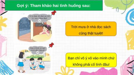 Các em ghi lại tình huống đó vào tờ giấy và gửi lại cho giáo viên.