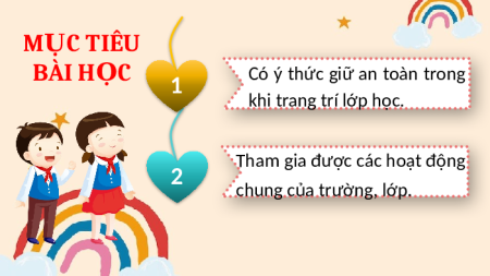 Có ý thức giữ an toàn trong khi trang trí lớp học.