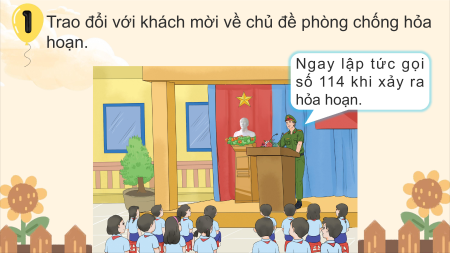 Trao đổi với khách mời về chủ đề phòng chống hỏa hoạn. Ngay lập tức gọi số 114 khi xảy ra hỏa hoạn.