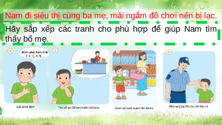 Hãy sắp xếp các tranh cho phù hợp để giúp Nam tìm thấy bố mẹ.