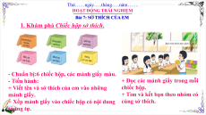 + Xếp mảnh giấy vào chiếc hộp có nội dung cùng sở thích. tương tự.