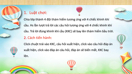cầu. Trả lời đúng khinh khí cầu (KKC) sẽ bay lên thám hiểm bầu trời. 2.
