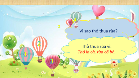 xuất hiện, click vào đáp án câu hỏi, đáp án sẽ biến mất, KKC bay lên. Tr Tong r c ong âu c Đọc t chuy âu o câu ện chuy Thỏ ện sau: Thỏ thua Vì rùa thu Thỏ a sao , la ai rùa cà thỏ chạ , chỗ y ai thua nhanh thắn nọ , g rùa chỗ ? hơn ki ? cuộc? a. Thỏ thua rùa vì: