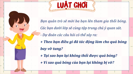 Bạn quản trò sẽ mời ba bạn lên tham gia thổi bóng.