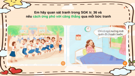 nêu cách ứng phó với căng thẳng qua mỗi bức tranh