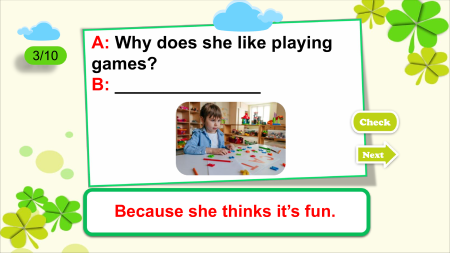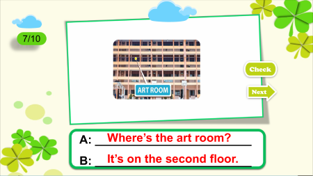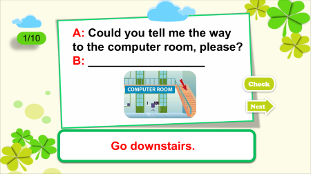 to the computer room, please? B: __________________ Check Next Go downstairs.