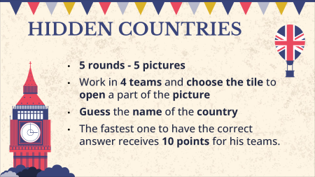 By the end of this lesson, Ss will be able to gain: Knowledge Core competence Personal qualities An overview and lexical Develop - Self-study skills items about the topic communication skills - Raise students’ “English-speaking and cultural awareness awareness of the need countries” to learn English. Warm-up: Hidden countries HIDDEN COUNTRIES