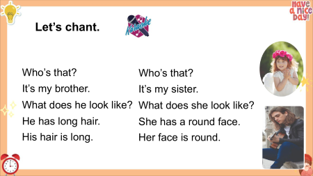hỏng liên kết (hyperlink)ở game. Warm-up Let’s chant. Who’s that? Who’s that? It’s my brother. It’s my sister.