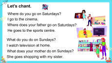 Where does your father go on Saturdays? He goes to the sports centre. What do you do on Sundays? I watch television at home.