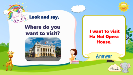 Gõ số điểm của các đội vào ô điểm. Look and say. Where do you want to visit? I want to visit Ha Noi Opera House.