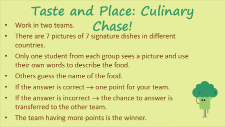 Taste and Place: Culinary Chase! PRESENTATION Vocabulary • Task 1: Listen and read. PRACTICE