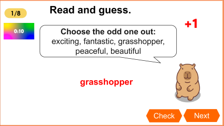 exciting, fantastic, grasshopper, peaceful, beautiful grasshopper Check Next