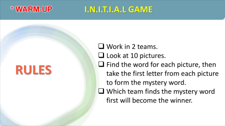 English 9 – Global success ENGLISH 9 Hello everyone !!! q Work in 2 teams. q Look at 10 pictures.