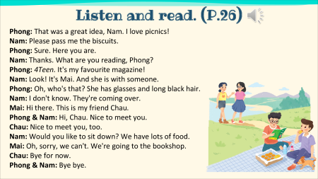 They are Chau, Mai, Phong and Nam. 2. What is Phong doing?