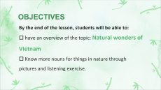 Watch and guess the topic. Unit 5 Natural wonders of Vietnam Lesson 1: Getting started OBJECTIVES