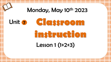 Monday, May 10th 2023 Unit 7 Lesson 1 (1+2+3) Warm-up Let’s chant. Classroom, classroom. Is that your classroom? Yes, it is. Yes, it is.