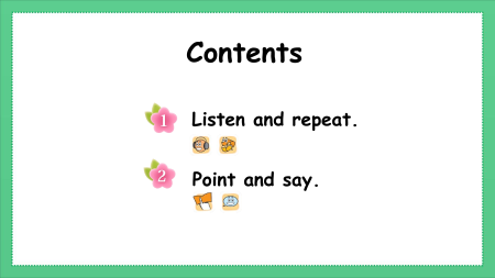 It’s red. It’s a red pencil. Contents Listen and repeat. Point and say.