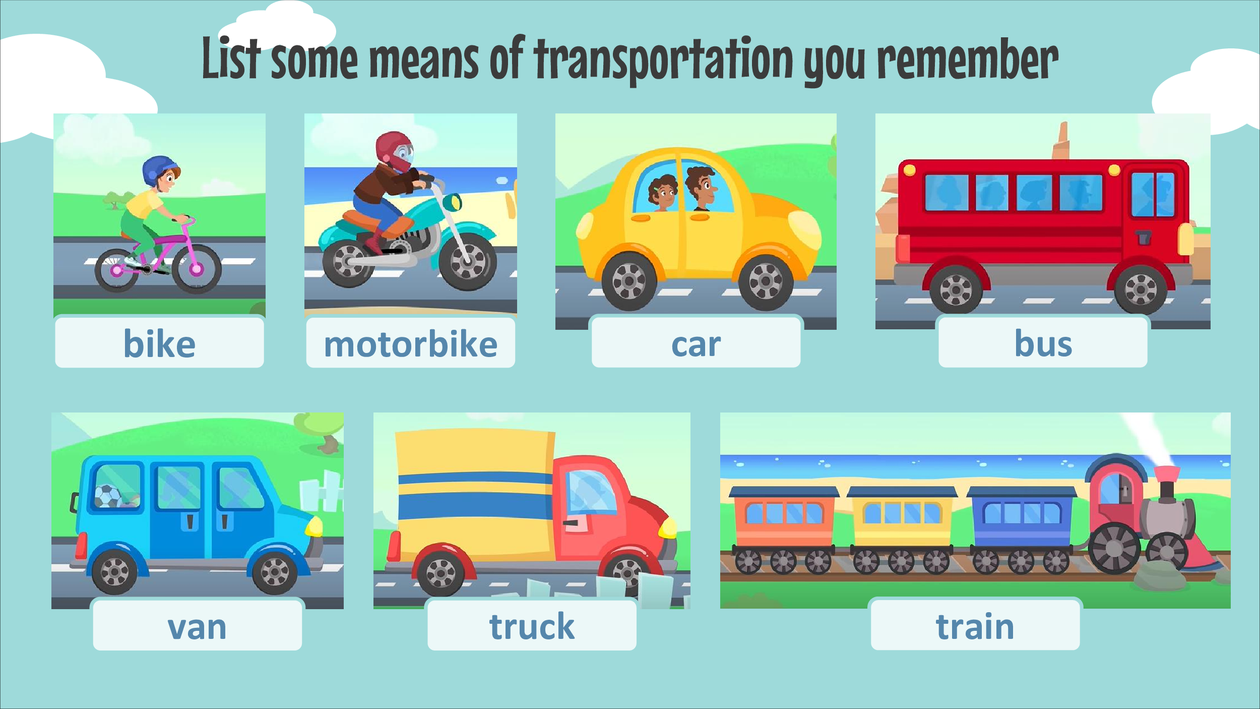 List some means of transportation you remember bike motorbike car bus van truck train UNIT 7: TRAFFIC Lesson 1: Getting started Objectives