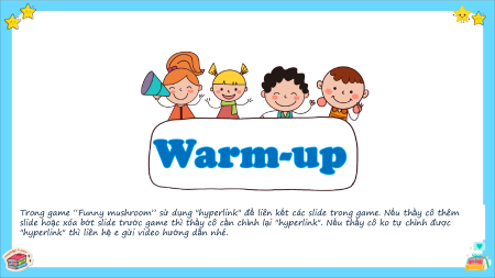 Trong game “Funny mushroom” sử dụng "hyperlink" để liên kết các slide trong game. Nếu thầy cô thêm