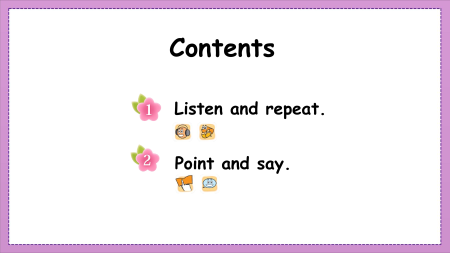 In the park Warm-up Contents Listen and repeat. Point and say.