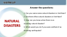 related to natural disasters you know. CONSOLIDATION Wrap-up Homework WARM-UP Answer the questions: