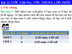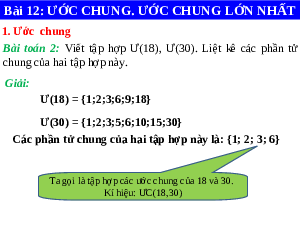 Bài 12: ƯỚC CHUNG. ƯỚC CHUNG LỚN NHẤT