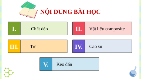BÀI 9. VẬT LIỆU POLYMER NỘI DUNG BÀI HỌC I. Chất dẻo II. Vật liệu composite III. Tơ IV. Cao su V. Keo dán
