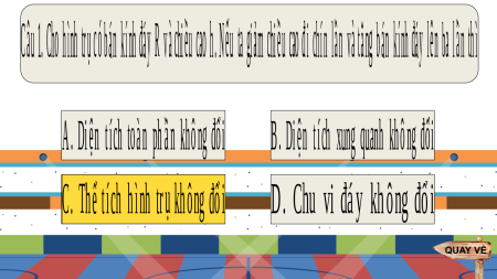 C. Thể ể tíchch hình trụ không đổi D. Chu vi đáy không đổi
