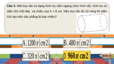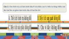 Câu 2. Cho hình trụ có bán kính đáy R và chiều cao h. Nếu ta tăng chiều cao