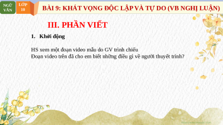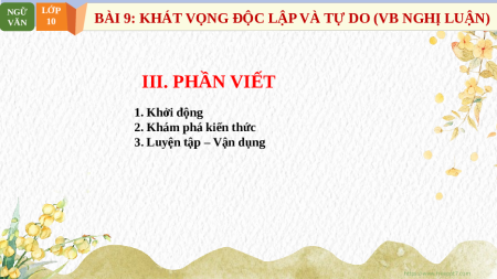 BÀI 9: KHÁT VỌNG ĐỘC LẬP VÀ TỰ DO (VB NGHỊ LUẬN) VĂN 10 III. PHẦN VIẾT 1. Khởi động 2. Khám phá kiến thức