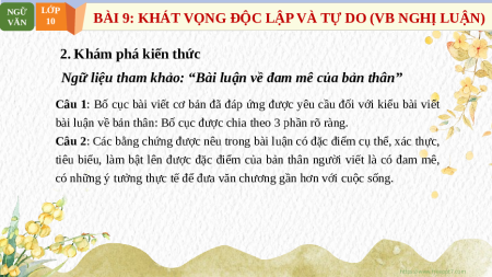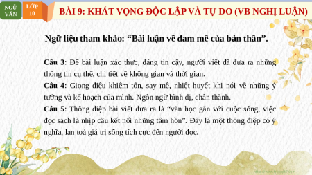 BÀI 9: KHÁT VỌNG ĐỘC LẬP VÀ TỰ DO (VB NGHỊ LUẬN) VĂN 10